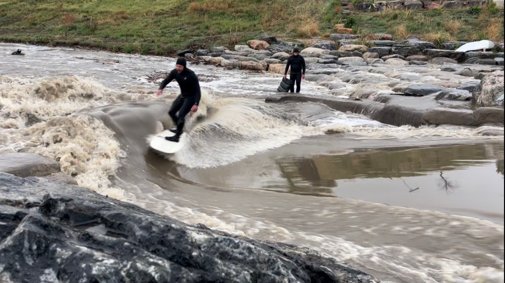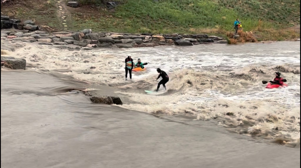Benni’s was surfed yesterday by two brave locals, Nathan and Cody, as the angry S Platte was well over a thousand cfs. Look for Benni’s to come back in play as the flow drops today below a thousand cfs.