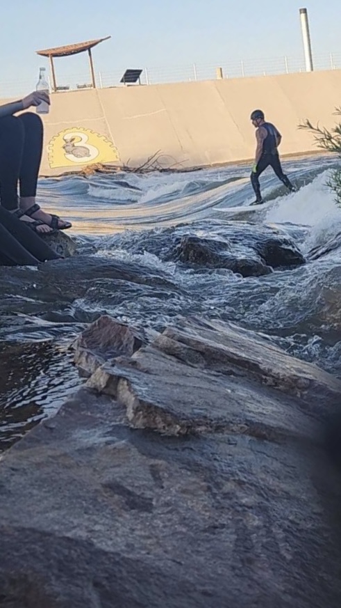 RIVER SURF TIP: When next up in the line-up, be the “safety” (lifeguard) for the surfer on the wave. Keep an eye on each other. Person next up should always be watching the rider on the wave, and after they fall, briefly watch to see if the prior surfer is ok as they flush away from the wave. Also it will assure there is no board behind the wave before you drop in. Oh and those in the line-up, point to the direction of any lost board for the prior surfer as well to help them find their board to swim to.