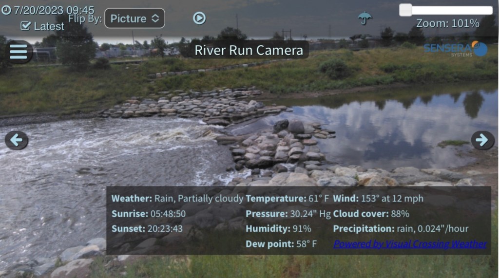 Came up a bit…. We are in Salida and it rained up here hard. Looks like some rain must have hit the front range as well. RRP has some flow. Might be a gutter bump day of sorts with a chance of rain forecasted in metro Denver in the evening