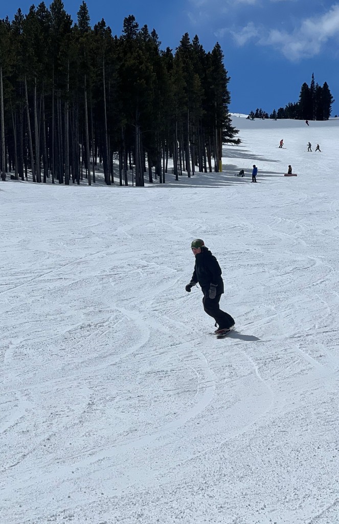 We are at Breck surfing the snowskates today.