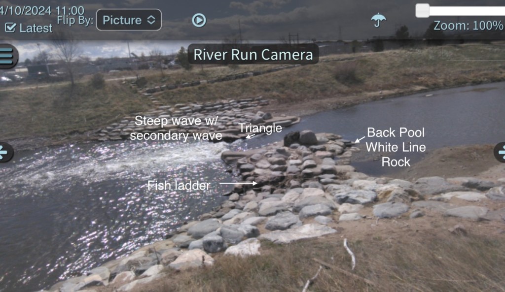 Chatty flow is just at that level right now that misses Sixx being surfable unless some more water makes it into the river tributaries and down into the S. Platte today. Yesterday, Sixx was just at that threshold of Sixx being surfable and some local surfers were giving it a shot. There was some snow in the mountains last night; so if you are jonesing for some surf, glance at the RRP gauge (not the Chatty gauge) every now and then for any indicators of moving upward to 125cfs and also look at the cam….. The RRP gauge often does not update timely so check out the Sixx Cam Surfable Indicators below... Beavers, 16th and Dave’s are surfable today.