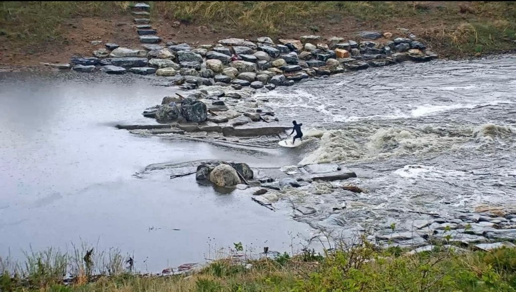 TIP: Keep an eye on rain bumps for short blasts of surfable waves lasting a day or sometimes only hours. Yesterday was an example. The continuous and at times heavy rains late Saturday into Sunday created excellent surf for RRP and Trestles that lasted most of Sunday…. Sure the wave gendarme cautions “it’s dangerous to surf gutter bump waves” but sometimes you got to get into the dirty water to get good surf…. Reality is the brown water is mud/silt and not all that worse than dam release water. Even ocean surfed places like SoCal, the water often is not demonstrably any cleaner (and at times dirtier) than our gutter bump river wave surf.