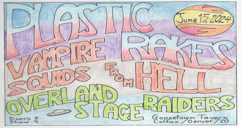 Later in the evening let’s meet up for some radikal surf/psychedelic/punk fusion surf bands, The Plastic Rakes and the Vampire Squids from Hell, at the Goosetown Tavern 3242 E Colfax Ave Denver.